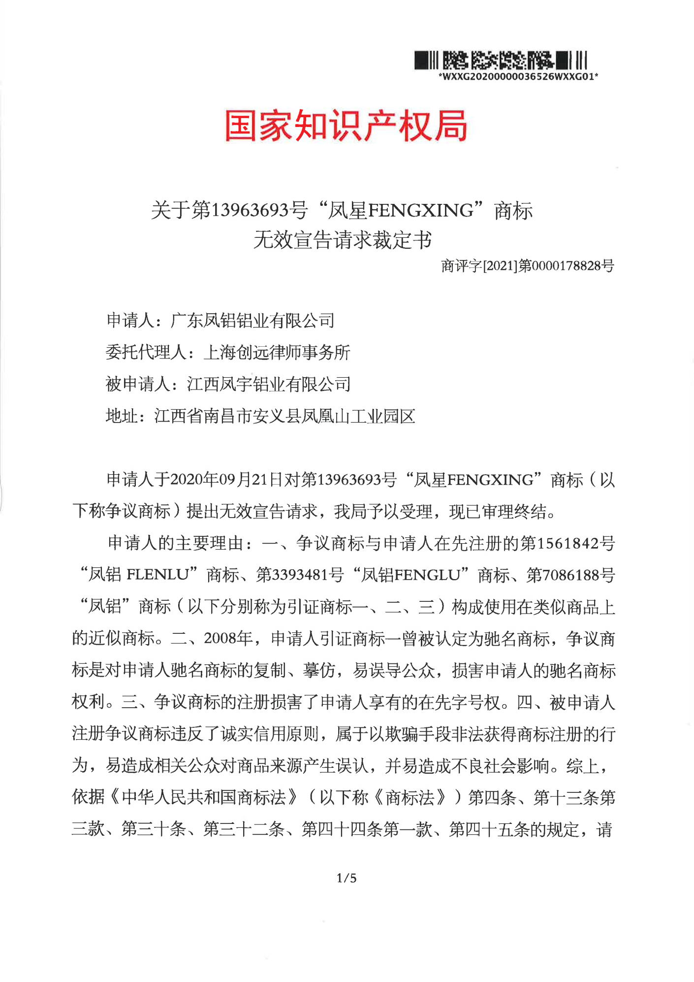 晋城辉知队 | 国家知识产权局:“凤星”商标无效