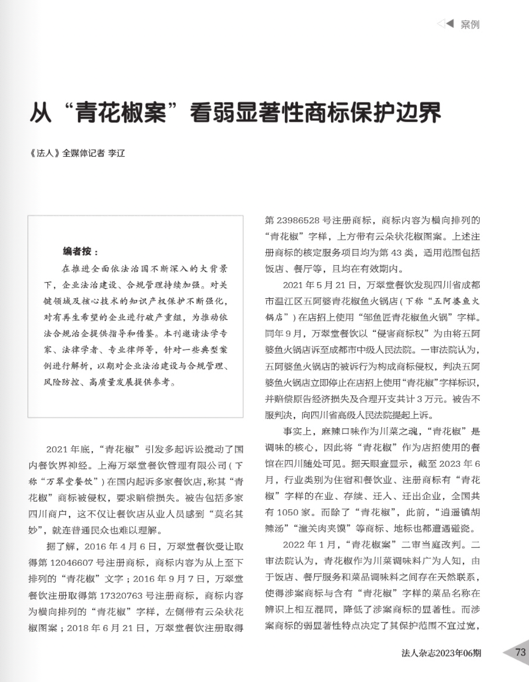 晋城辉知简讯 | 辉知队黄俊益律师应“法治日报”旗下杂志邀请,就“青花椒”案发表专家点评